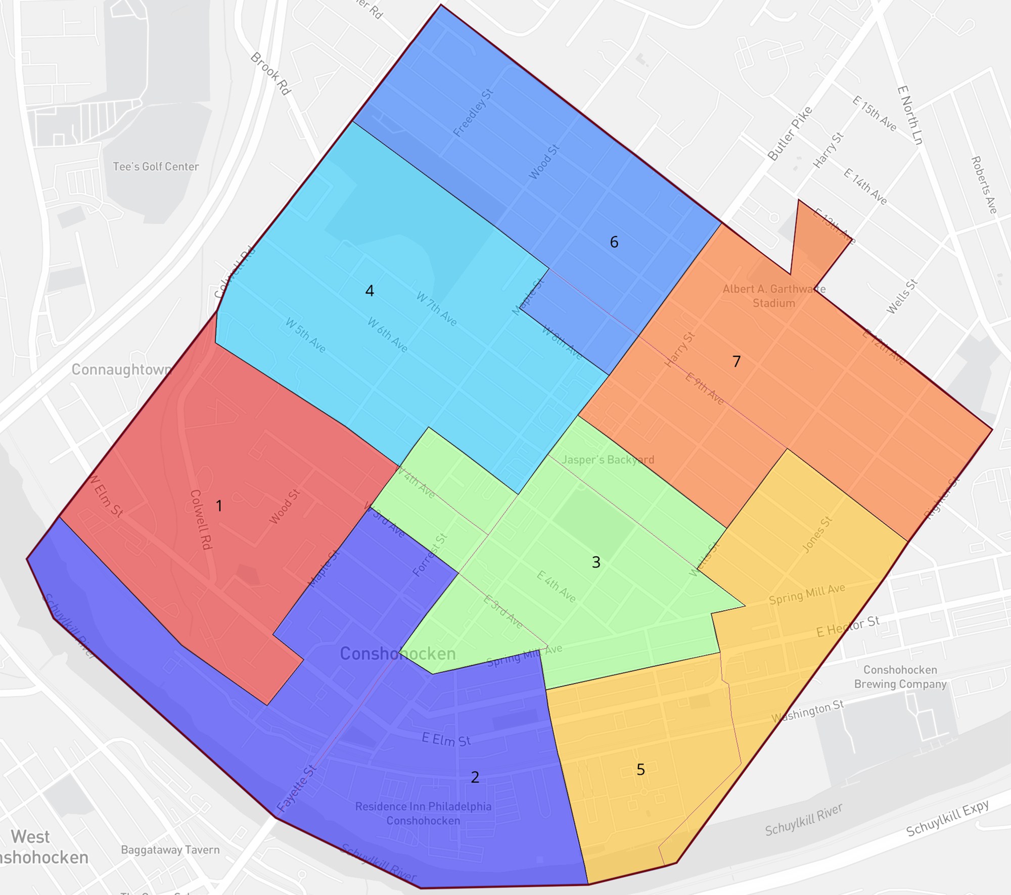 For additional information regarding the Redistricting Task Force, please visit the Borough website at https://www.conshohockenpa.gov/government/citizen-boards-commissions/redistricting-task-force/.