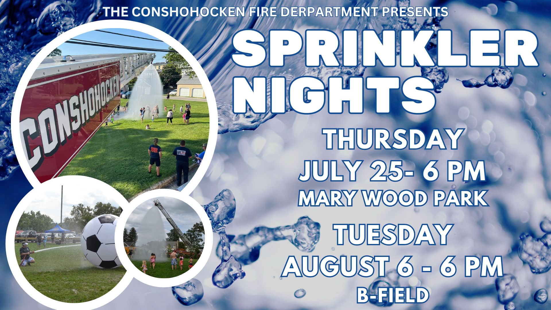 Home Resources News August Sprinkler Night Moved to August 6 Aug 12, 2024 Events General News Board & Commission Vacancy Notices Borough Closures & Holidays Emergency Alerts Employment Opportunities Events Meetings Parks & Recreation Road Closures & Construction RFPs/Bids Trash, Recycling & Yard Waste All Articles The Conshohocken Fire Department's August Sprinkler Night has been changed from Saturday, August 10, to Tuesday, August 6, at 6 p.m. at the B-Field. Recent Articles Chabad of Lafayette Hill to host Menorah Lighting on Monday, December 15 Holiday House Decorating Contest Registration Open Until Sunday, December 14 Oak Street to be close between Washington Street and Stoddard Avenue on Thursday, December 4 for Pipe Lining Resources Applications & Forms Borough Code of Ordinances Borough Projects Calendar Citizen Concerns & Request For Services Conshohocken Hometown Heroes Banner Program Contact & Directory Friends of Conshohocken Parks Local Food Pantries News PA Navigate Pay Online PECO Customer Relief Fund Right To Know Site Map Stormwater Management Utility Assistance Programs Website Feedback Borough of Conshohocken Borough Hall 400 Fayette Street Conshohocken, PA 19428 Directions to Borough Hall Website: www.conshohockenpa.gov Phone: (610) 828-1092 Fax: (610) 828-0920 Hours Mon - Fri: 8:30 am - 4:30 pm View Contacts & Directory